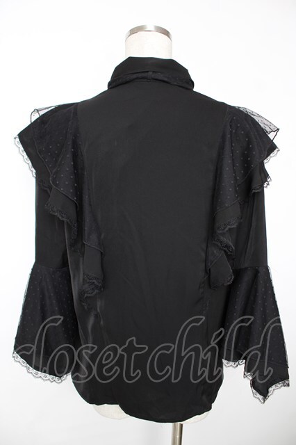 axes femme / ドットチュールリボン姫袖ブラウス F 黒 Y-25-12-05-063-AX-BL-SZ-ZS