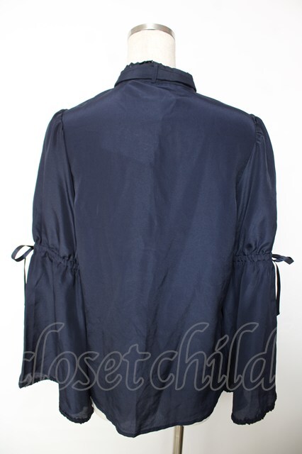 axes femme Kawaii / 姫袖フリルブラウス 紺 Y-25-12-05-072-AX-BL-SZ-ZY