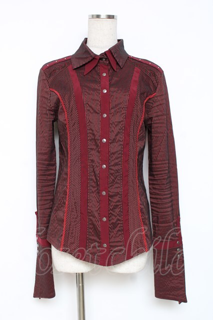 Ozz Croce / 二重襟ストライプスナップボタンシャツ エンジ Y-25-12-05-088-OO-BL-SZ-OS