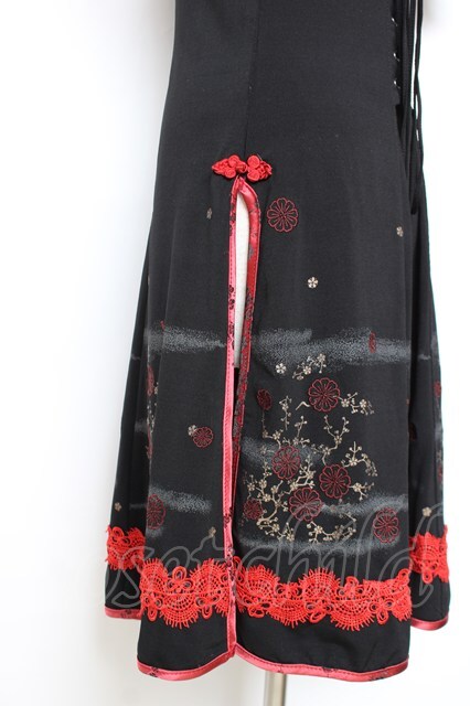 Ozz oneste / チャイナ風スリットワンピース 赤×黒 Y-25-12-05-101-OO-OP-SZ-ZY