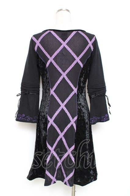 Ozz oneste / サイドベルベットレースデザインワンピース 黒×紫 Y-25-12-05-103-OO-OP-SZ-ZI [戻る]