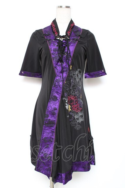 Ozz oneste / 和チャイナワンピース 黒×紫 Y-25-12-05-104-OO-OP-SZ-ZY [戻る]