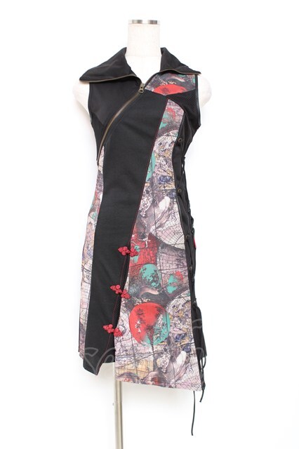 Ozz Croce / 柄切り替えチャイナチュニック 黒 Y-25-12-05-105-OO-OP-SZ-ZY