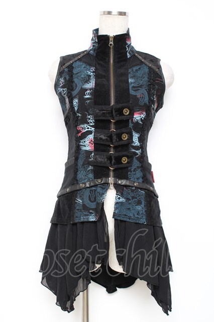 Ozz Croce / 龍プリント2WAYベスト 黒×ブルー Y-25-12-05-106-OO-TO-SZ-ZY