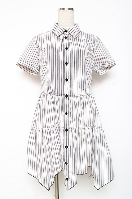 ALGONQUINS / 重ね着ストライプチュニ 黒 Y-25-12-05-112-AL-OP-SZ-ZY