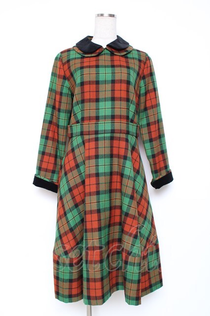 Jane Marple / 別珍衿のタータンワンピース M グリーン Y-25-12-05-121-JM-OP-SZ-ZY