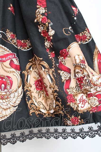 ALICE and the PIRATES / いばらうさぎのペイサージュ柄ジャンパースカートII 黒 Y-25-12-05-128-PA-OP-SZ-ZY