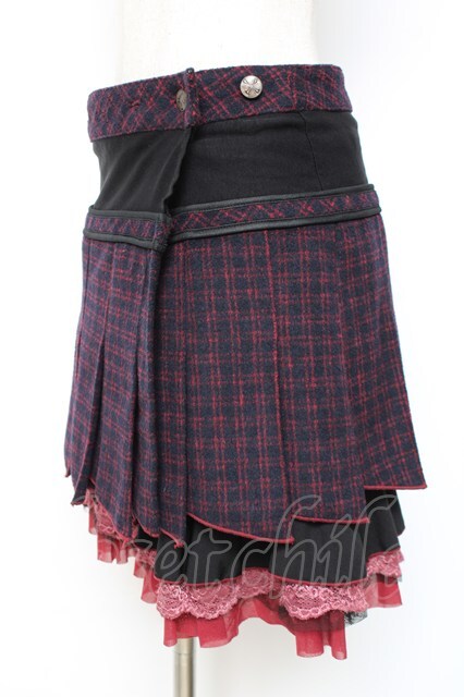 Ozz Croce / チェック柄裾プリーツスカート 赤×黒 Y-25-12-05-164-OO-SK-SZ-ZY
