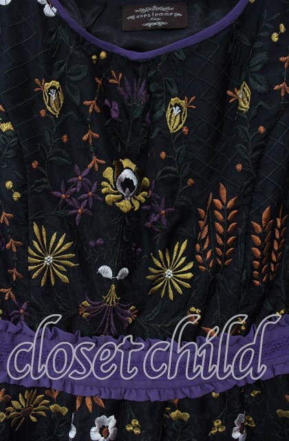 axes femme NOSTALGIE / アンティーク柄総刺繍ワンピース クロ×パープル O-25-12-06-069-AX-OP-IG-OS