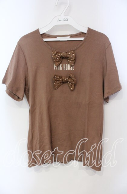 PINK HOUSE / 水玉リボンモチーフ付きカットソー ショコラ O-25-12-06-024-LO-TO-OW-ZT490 [戻る]
