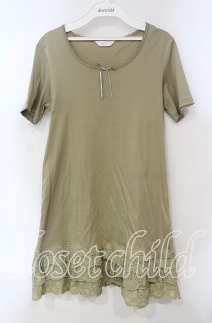 PINK HOUSE / 裾刺繍レース使いインナーカットソー グリーン O-25-12-06-026-LO-TO-OW-ZT234