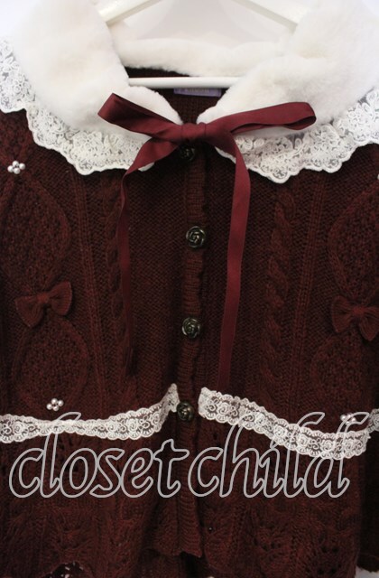 axes femme Kawaii / ファーカラーニットケープ ワイン O-25-12-06-058-AX-TO-IG-OS [戻る]