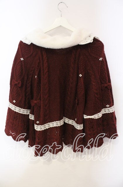 axes femme Kawaii / ファーカラーニットケープ ワイン O-25-12-06-058-AX-TO-IG-OS