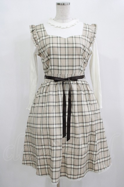 axes femme POETIQUE / チェック×カットソー切替ワンピース M ベージュ H-25-12-12-1023-AX-OP-NS-ZH