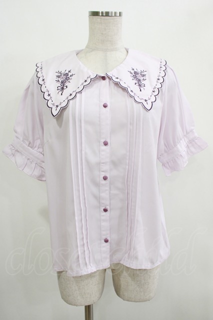 axes femme POETIQUE / ブーケ刺繍スカラップ襟ブラウス M ネイビー H-25-12-12-1053-AX-BL-NS-ZH [戻る]