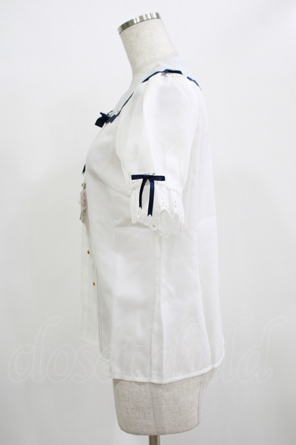 Amavel / Starry Marche パフスリーブ ブラウス Free オフ/ネイビー H-25-12-12-1058-CA-BL-NS-ZH