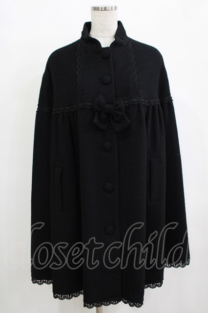 Innocent World / リボンレーススタンドカラーマント Free ブラック H-25-12-12-1041-IW-CO-NS-ZH