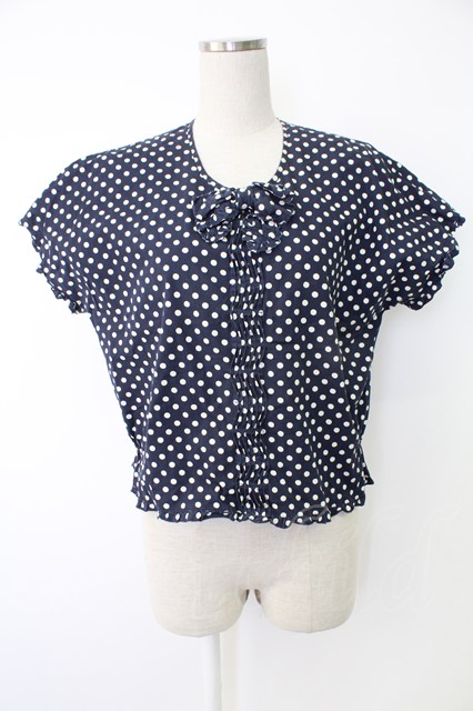 INGEBORG / 水玉半袖ブラウス ネイビー×シロ T-25-12-07-017-LO-BL-OW-ZT473