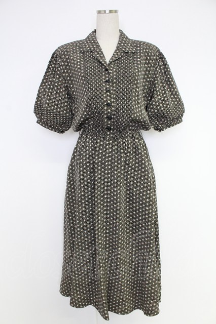 KANEKO ISAO / 麻の葉総柄ピンタックワンピース クロ T-25-12-10-016-EL-OP-OW-ZT111