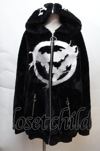 Amilige / 刺繍入りファーZIPコート 黒x白 S-25-12-06-024-PU-CO-AS-ZS