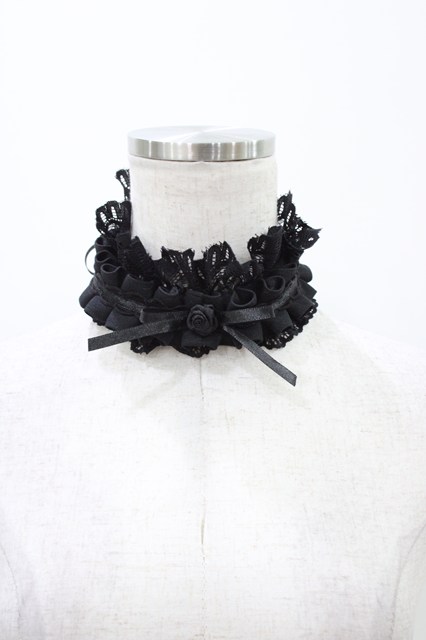 MARBLE / 2WAYサテンバラ付きタックプリーツチョーカー/ヘッドドレス ブラック×ブラック H-25-12-14-1002-GO-AC-KB-ZH [戻る]