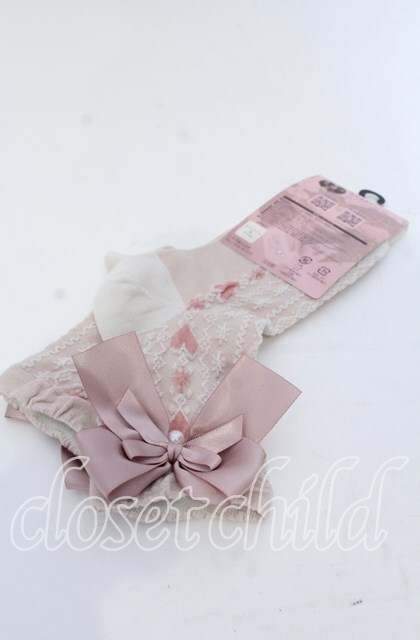 m petit by misako / ハートレース柄リボン付きクルーソックス 23-25cm ピンク O-25-12-07-078-LO-ZA-OW-OS