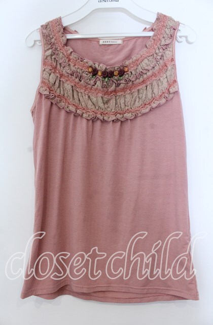 axes femme / 巻き薔薇レースフリルタンクトップ ピンク O-25-12-07-016-AX-TO-IG-OS