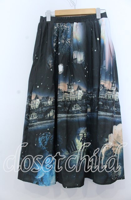 axes femme Nostalgic / 幻想街柄ロングスカート M グリーン O-25-12-07-047-LO-SK-IG-OS
