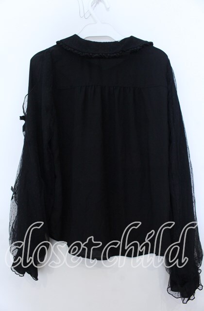 axes femme Kawaii / ドットチュールブラウス M くろ O-25-12-07-026-AX-BL-IG-OS