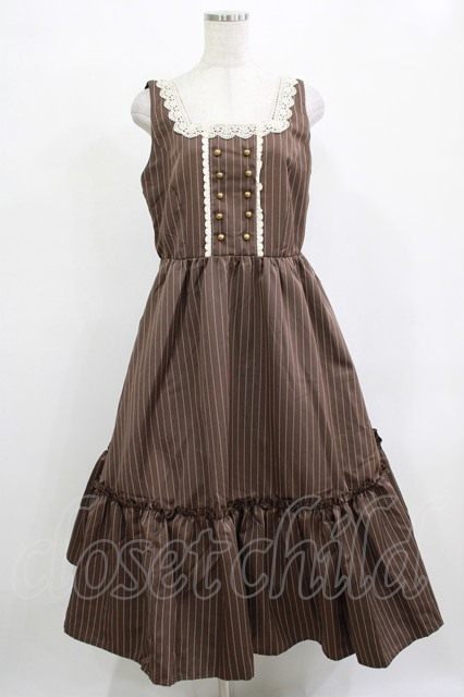 m petit by misako / TT*AOKストライプジャンパースカート LL ブラウン H-25-12-13-1014-LO-OP-NS-ZH