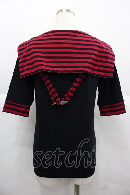 Deorart / ボーダーセーラー半袖カットソー M 黒X赤 I-25-12-06-055-PU-TO-SA-ZI
