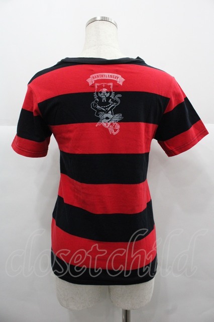 HANGRY&ANGRY / ボーダー半袖カットソー 黒X赤 I-25-12-06-042-HN-TO-SA-ZI
