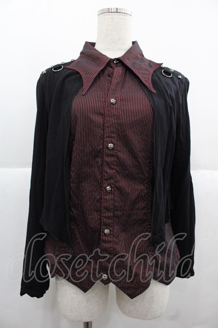 ALGONQUINS / カーデ重ね風ストライプシャツ ボルドーX黒 I-25-12-06-031-AL-BL-SA-ZI [戻る]