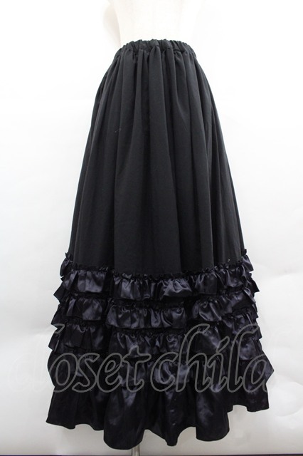 ATELIER PIERROT / 裾サテンフリルロングスカート 黒 I-25-12-06-096-EL-SK-SA-ZI