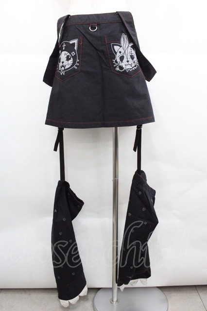 HANGRY&ANGRY / ブーツカバー付きスカート 黒X赤 I-25-12-06-114-HN-SK-SA-ZI [戻る]