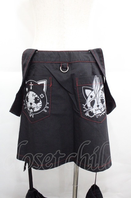HANGRY&ANGRY / ブーツカバー付きスカート 黒X赤 I-25-12-06-114-HN-SK-SA-ZI