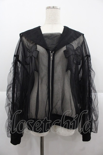 Candy Stripper / TULLE SHEER SAILOR BLOUSON 黒 I-25-12-06-062-PU-JA-SA-ZI