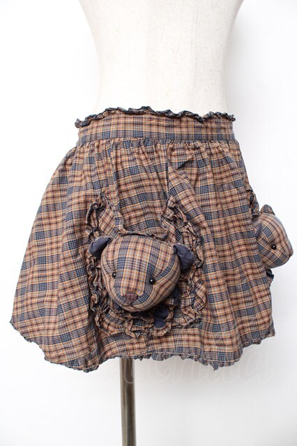 PINK HOUSE / くまモチーフ付きチェックエプロン ブラウン×ネイビー Y-25-12-08-048-LO-ZA-SZ-ZY