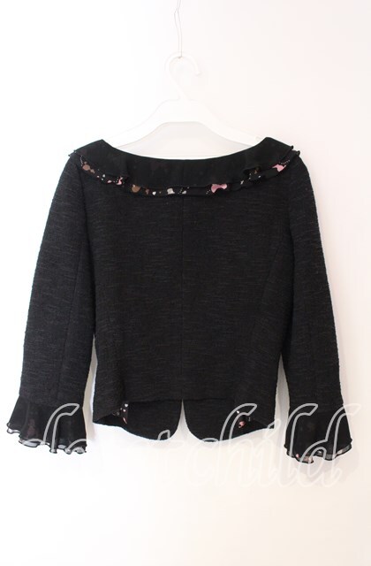 JESUS DIAMANTE / フリルツイードジャケット 40 プードル柄クロイ O-25-12-08-054-JE-JA-IG-OS