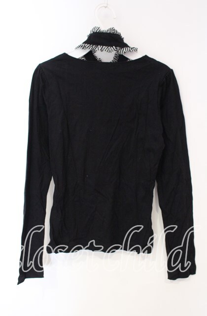 BPN / チョーカー付きストライプフリルカットソー M ブラック×ホワイト O-25-12-08-033-GO-TO-IG-OS