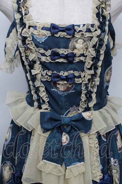 metamorphose / 【プラスサイズ】Vintage cameo チュールフリルリボンdress アンティークブルー S-25-12-07-060-ME-OP-HR-ZS