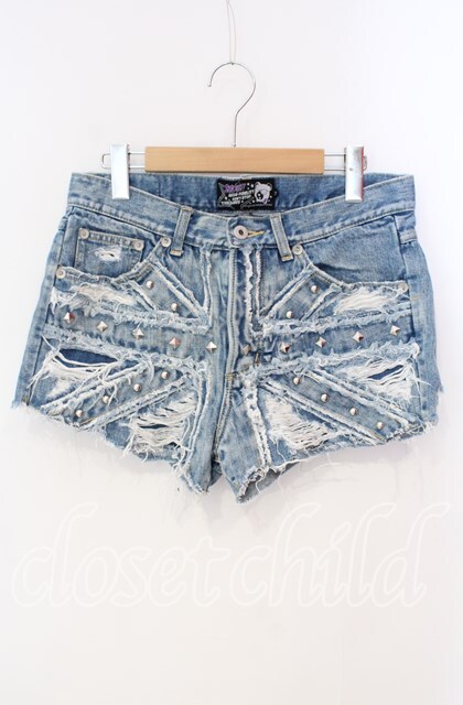 Candy Stripper / スタッズダメージショートパンツ M ブルー O-25-12-09-032-PU-PA-OW-ZT520