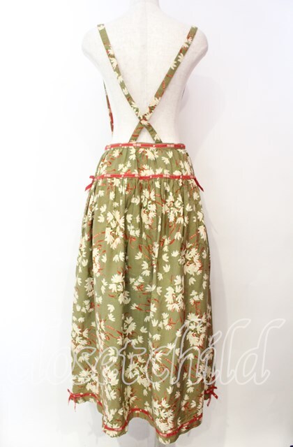 PINK HOUSE / ロゴリボン使い花柄吊りスカート グリーン O-25-12-09-039-LO-SK-OW-OS