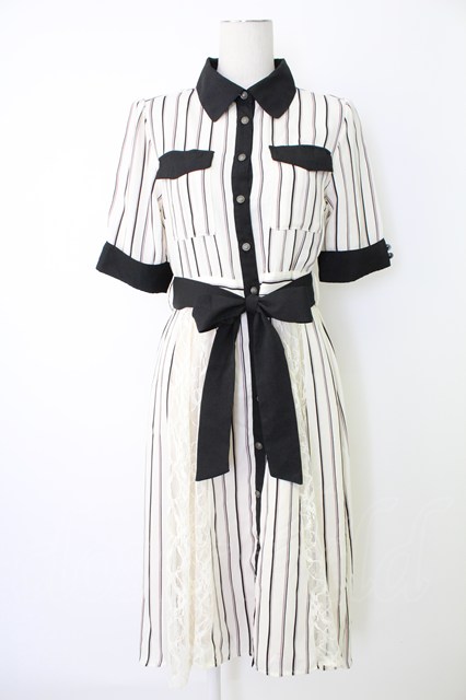 axes femme / マルチストライプ柄シャツワンピース 白X黒 T-25-12-17-025-AX-OP-SA-ZT