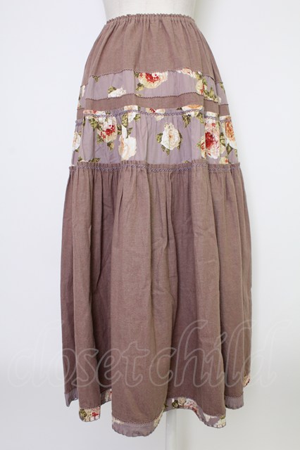 KANEKO ISAO / 花柄切替前開きスカート パープル T-25-12-17-040-EL-SK-SA-ZT