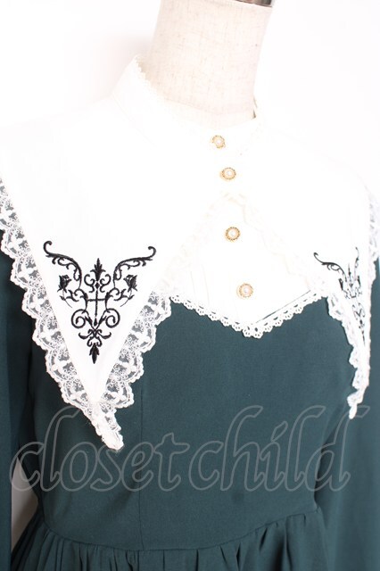 axes femme POETIQUE / 刺繍襟付きシスターワンピース M グリーン Y-25-12-10-067-AX-OP-SZ-ZY