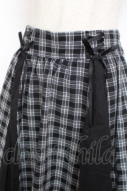 axes femme / パターン切替チェックスカート M 黒 Y-25-12-10-090-AX-SK-SZ-ZI