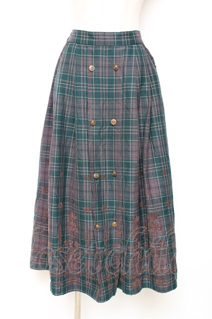 axes femme / フロッキーチェックスカート M グリーン Y-25-12-10-091-AX-SK-SZ-ZI