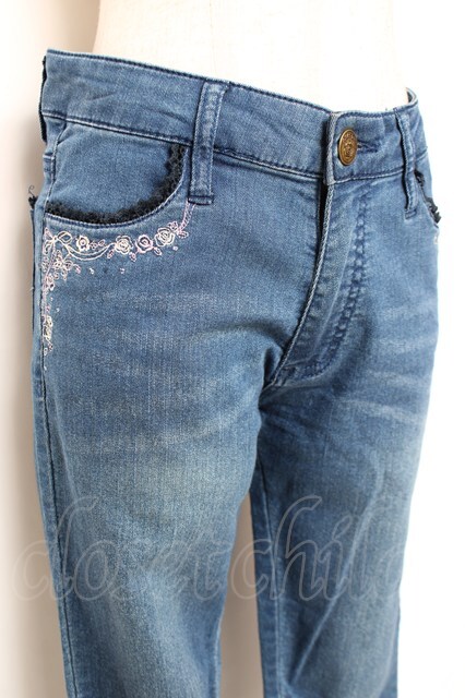 axes femme / ちょうちょ刺繍デニムパギンス M インディゴ Y-25-12-10-106-AX-PA-SZ-ZY