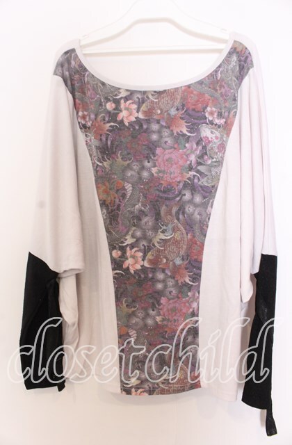 Qutie Frash / 気楡茶閃洸 ドルマンカットソー ホワイト×ブラック O-25-12-10-023-QU-TO-IG-OS